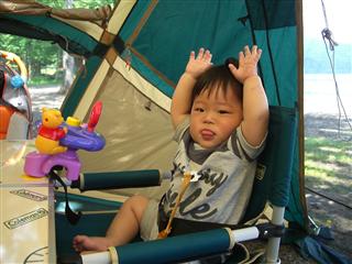 当の息子はというと、キャンプ場に向かうまで車内で爆睡していたせいか、元気100倍!。