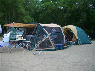 弟さん家族も一緒に来ているので、小3の姪に息子のお守りをたのんで、いざテントの設営。