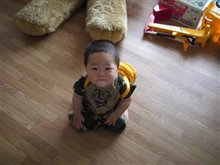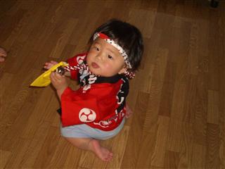 1歳の誕生日には1升のお餅を背負わせるというならわしがあるので我が家も例に倣ってやってみた。