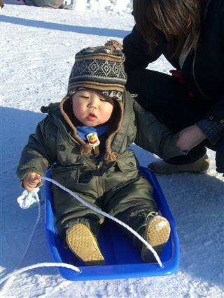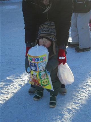 滑り台はあきらめて、雪像の前で写真でもと思ったのですが、アンパンマンがない・・・・。