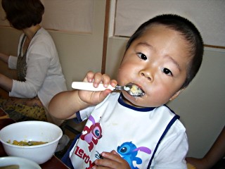 息子がご飯を食べるのが上手になってる。